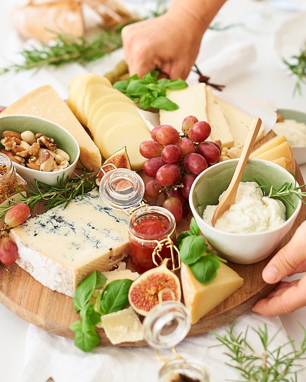 Syltede grøntsager som oliven, artiskokhjerter, balsamico-løg og soltørrede tomater er et must. Prøv den italienske mostarda-sennep. Og spar ikke på friske krydderurter som basilikum eller rosmarin til dekoration.